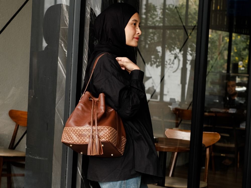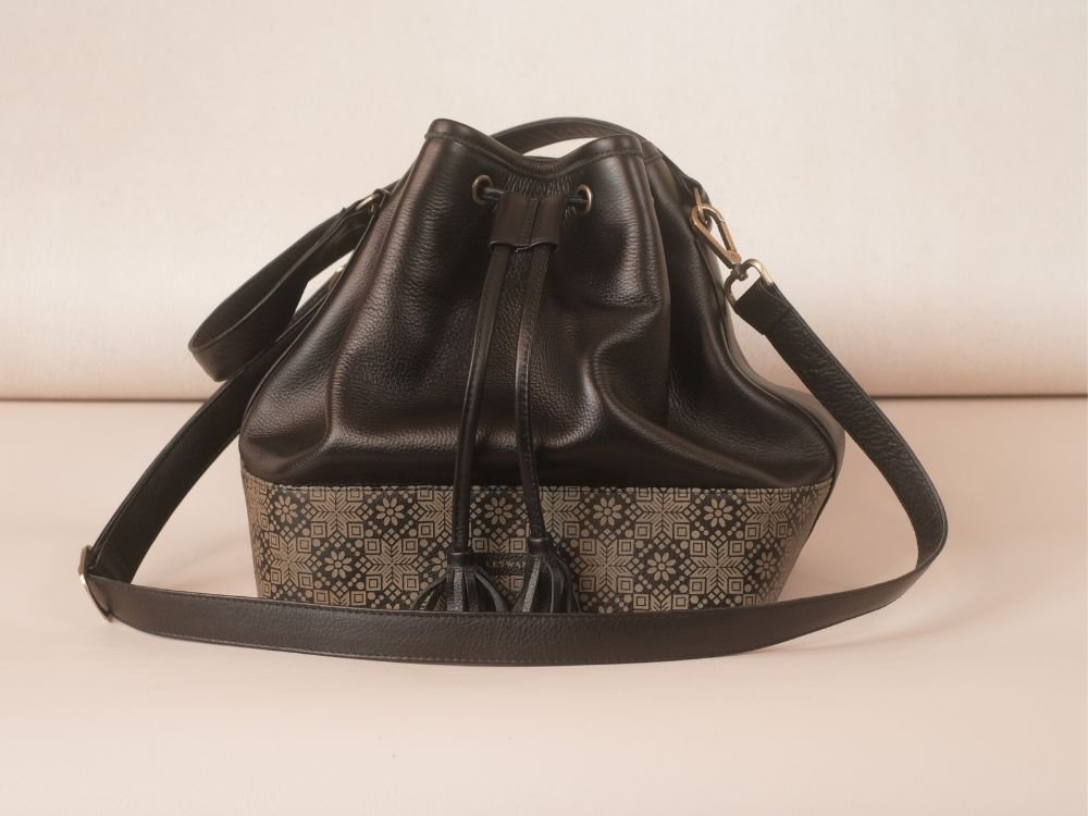 Erina Bag – Tas Serut Bucket Selempang Bahu Wanita Kekinian Kulit Sapi Asli Original Motif Batik – Leswan leather