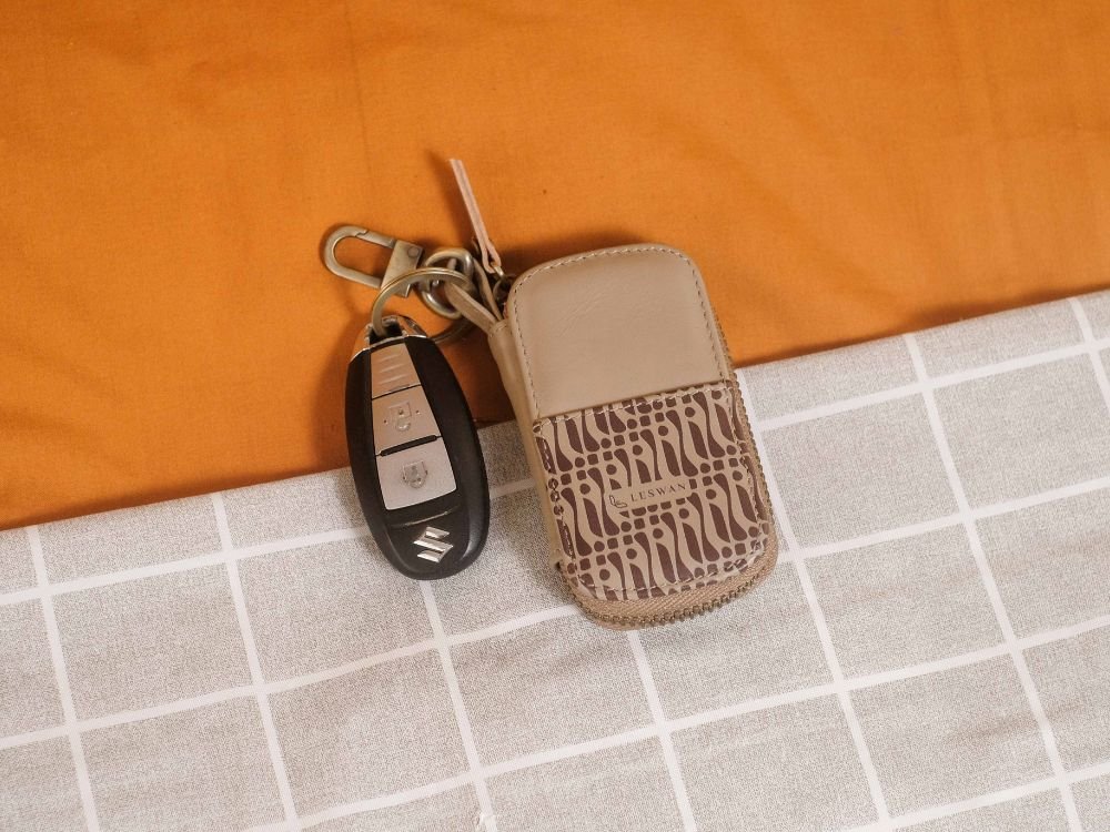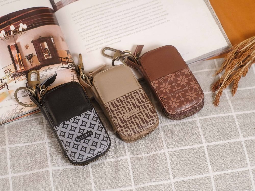 Kana Batik – Gantungan Kunci Tempat STNK Resleting Mobil dan Motor Apapun Kulit Asli 100% Motif Batik Modern – Leswan Leather
