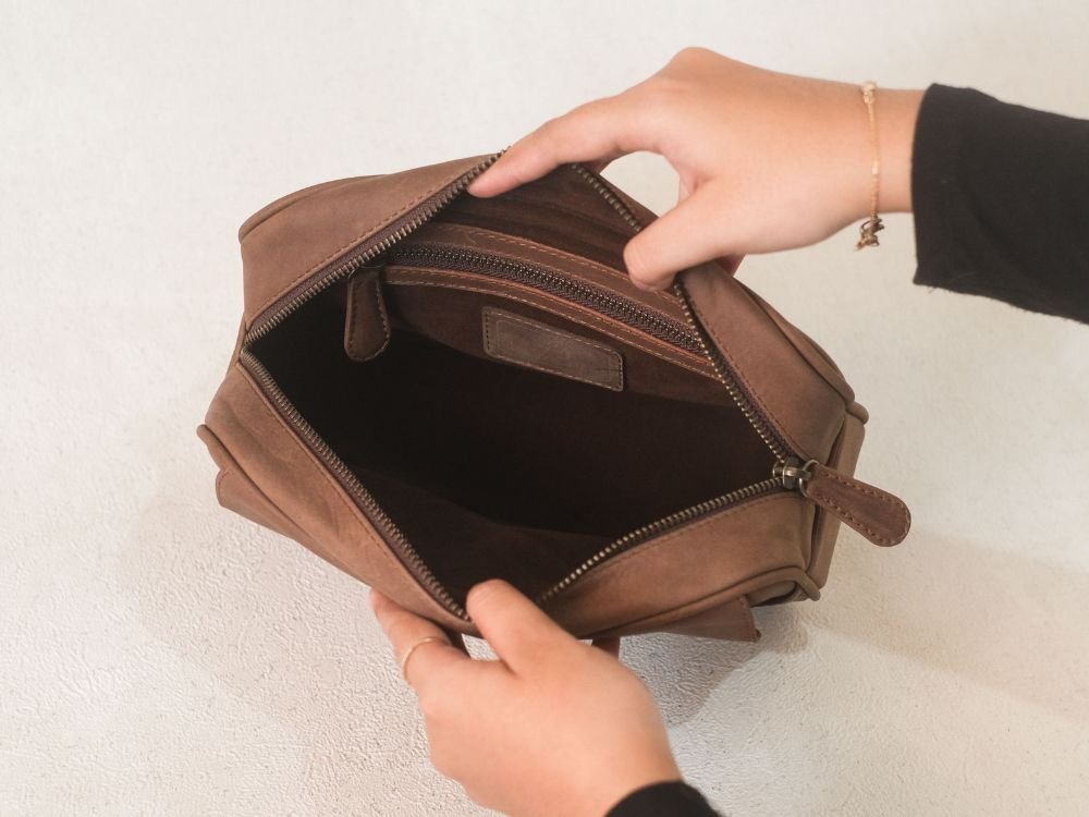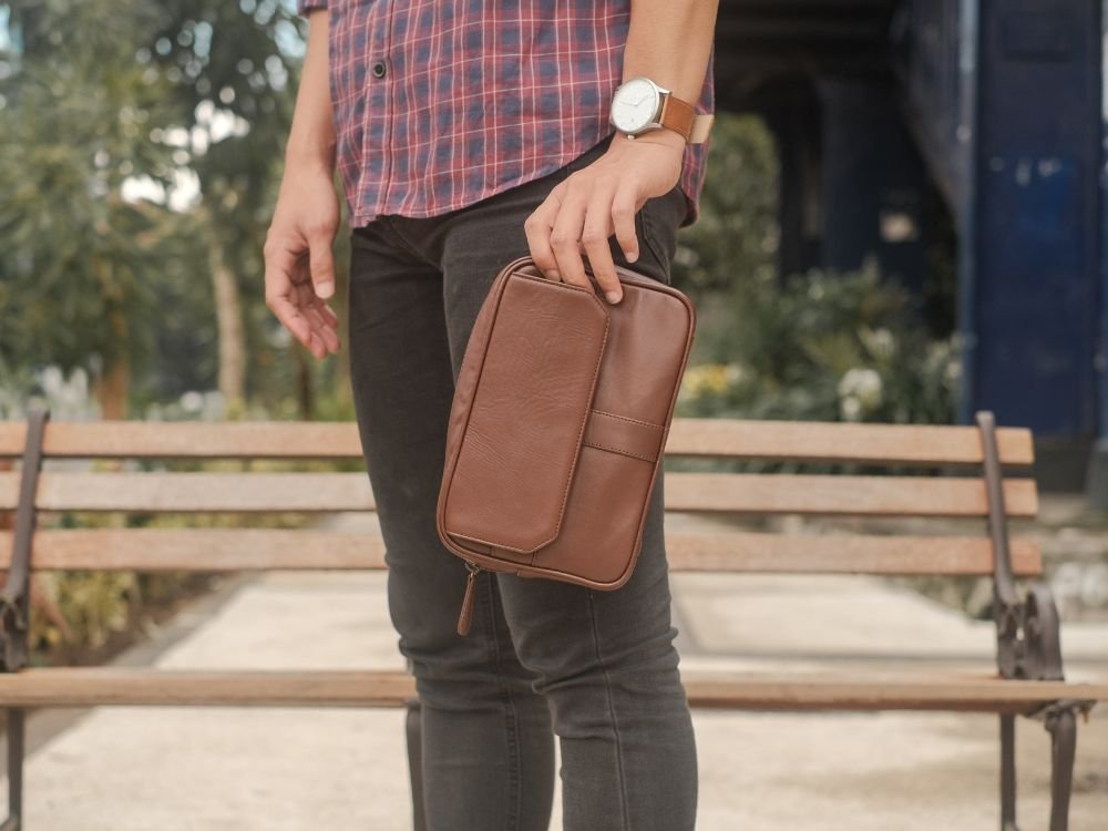 Mahja Handbag – Clutch Pouch Bag untuk Travel Makeup Cocok Dipakai Pria dan Wanita Kulit Sapi Asli – Lavaches Leather