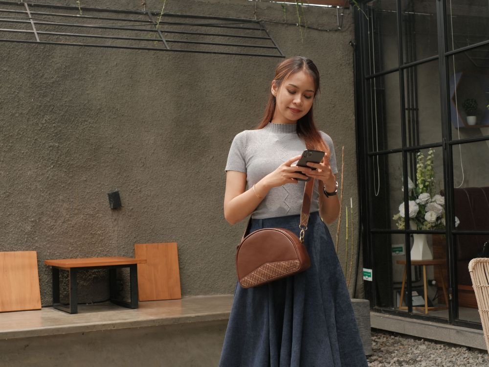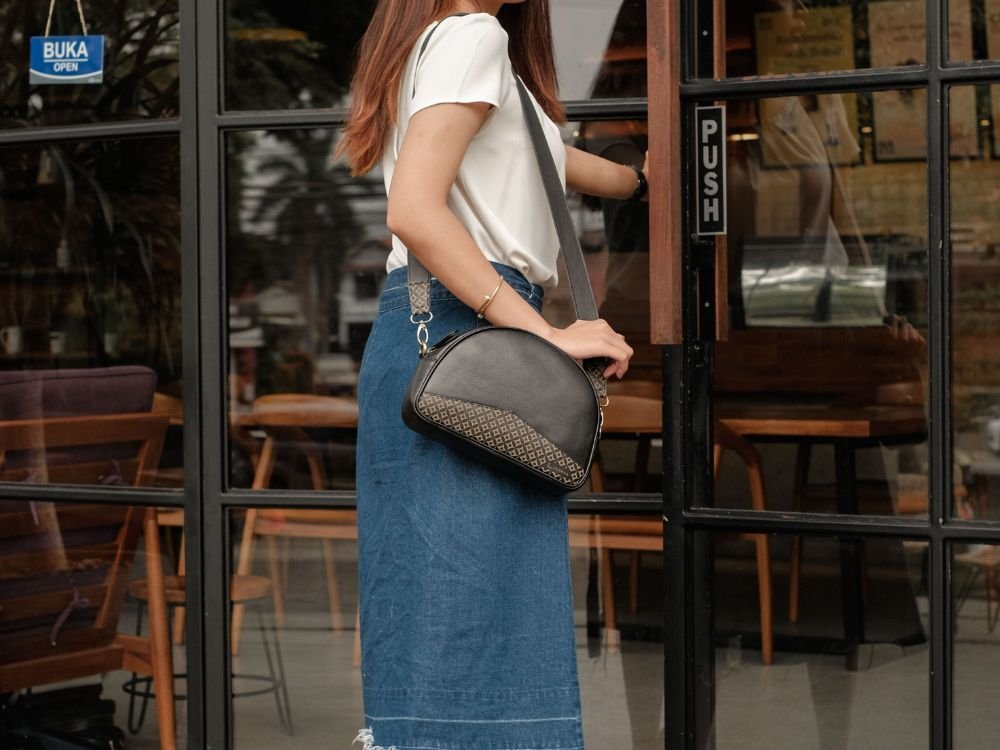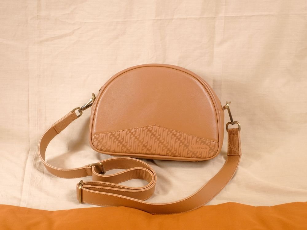 Neka Batik – Tas Wanita Selempang Bahu Setengah Lingkaran Kulit Sapi Asli Polos dan Batik – Leswan Leather