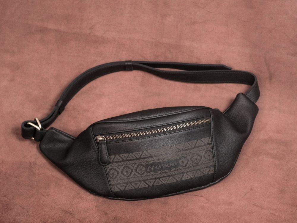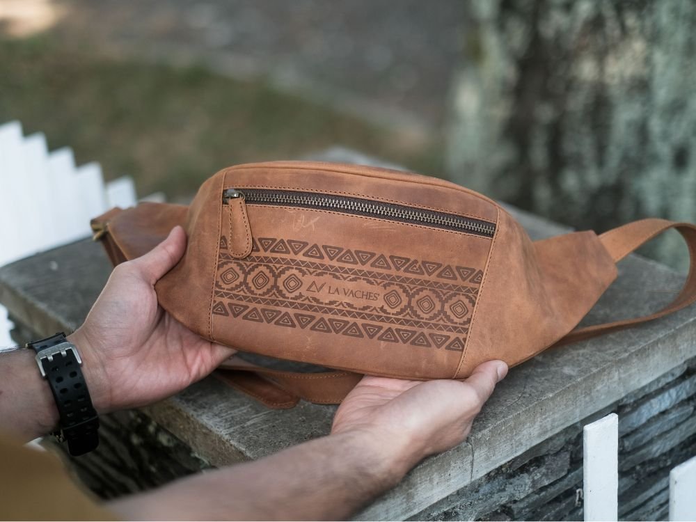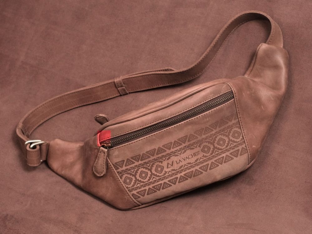 Rajini Waistbag Motif Tribal – Tas Selempang Dada Bahu Pria Wanita Kulit Sapi AsliĀ – Lavaches Leather